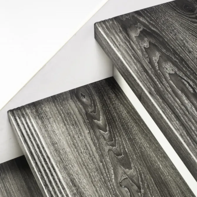 Dit is een complete Stepwoord traprenovatieset met SPC toplaag traptreden in de kleur antraciet en witte stootborden, inclusief montagekit en afwerkingskit. Deze complete set is geschikt voor een trap met 1 kwart draai met 13 treden. De set wordt geleverd inclusief witte stootborden, omdat het een set voor een dichte trap betreft.