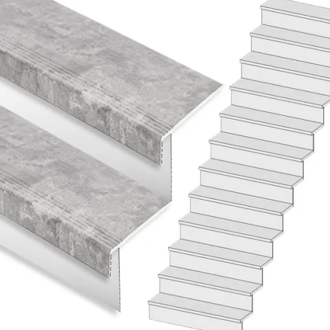 Dit is een complete Stepwoord traprenovatieset met SPC toplaag traptreden in de kleur beton grijs met witte stootborden, inclusief montagekit en afwerkingskit. Deze complete set is geschikt voor een rechte trap met 15 treden. De set wordt geleverd inclusief witte stootborden, omdat het een set voor een dichte trap betreft.