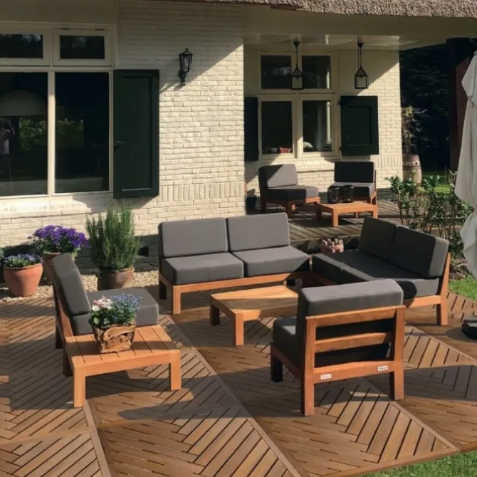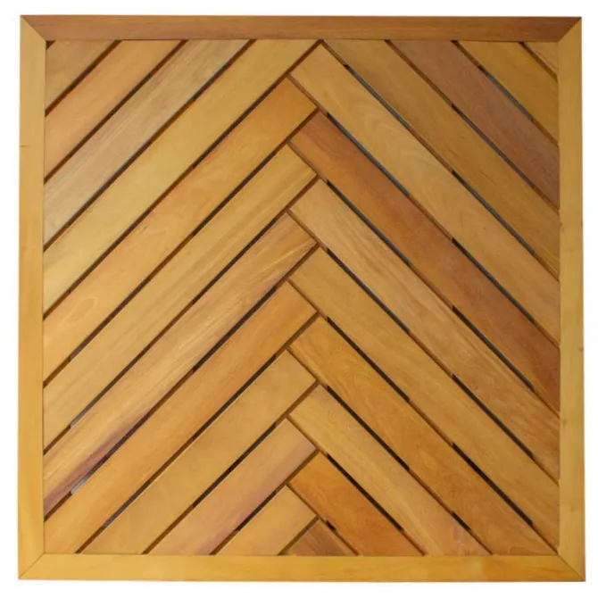 Prachtige Elephant hardhouten tegel in visgraat motief. Door diverse tegels naast elkaar te leggen creëer je een speels diagonaal patroon. De houten terrastegels zijn extra stevig dankzij een solide frame van hardhouten onderlatten.