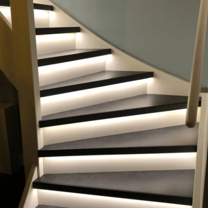 HomingXL kant-en-klare LED trapverlichting set. De LED-strip is geplaatst in een profiel. Deze set is compleet voor een trap tot en met 15 treden. De LED strips van 130 cm geven een warm wit licht en hiermee kun je de gehele trede verlichten. De strips zijn voorzien van dubbelzijdig tape waardoor je deze eenvoudig aan de trede plakt. Indien gewenst kun je de LED-strip eenvoudig inkorten. Optioneel kun je de set voorzien van sensoren waarmee de verlichting dmv beweging aan zal gaan.
