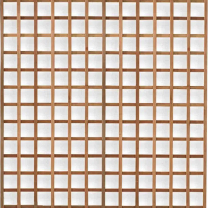 Trellis scherm horizontaal hardhout Almendrillo recht met kader rvs (177 x 180 cm). Dit scherm is voorzien van RVS schroeven om roesten te voorkomen. De afmeting per lat is 14 x 20 mm.