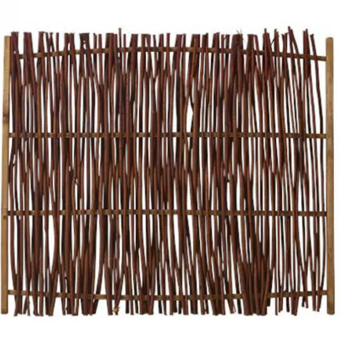 Plus Danmark tuinscherm gevlochten Wilgen Luksus 120 x 100 cm (B x H). Frame bruin gebeitst naaldhout 25 x 45 mm. Wilgen 2-jarige sterke wilgen Ø10-20 mm, voorbehandeld met schimmelwerend middel en olie.