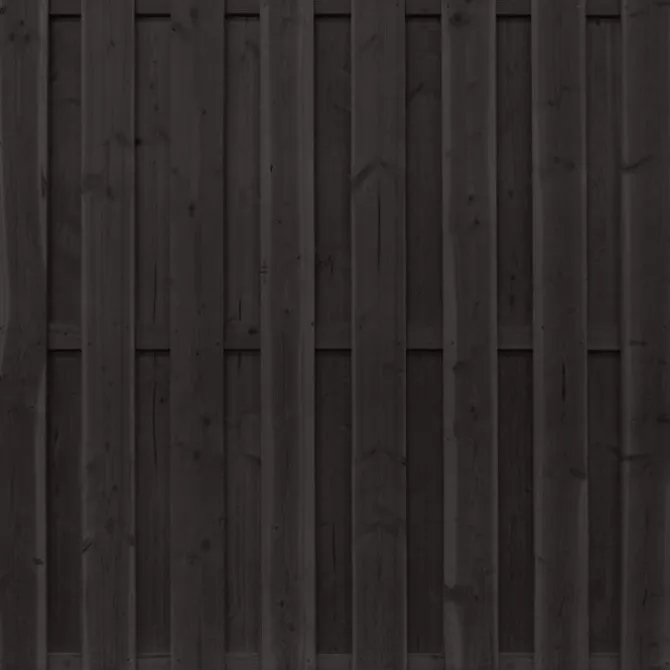 Vuren Finch scherm recht, 180 x 180 x 4,5 cm. Het zwart geverfde scherm bestaat uit 15 planken (8 planken voor, 7 planken achter) en is voorzien van 3 liggers. Voorzien van RVS schroeven om roesten te voorkomen.