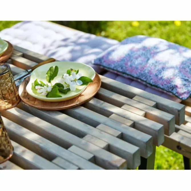Plus Danmark tuintafel Siesta gemaakt van dennenhout en grijs gebeitst met verf op waterbasis. Onderstel is thermisch verzinkt staal wat is gepoedercoat in de kleur antracietgrijs RAL 7016. Bouwpakket, deels voorgemonteerd, zelf in elkaar zetten
