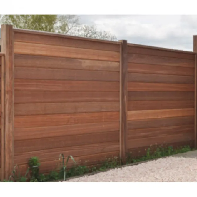 Eenvoudig zelfbouw systeem met dubbele rabatdelen, gleufpalen en afdeklijsten op vaste lengtes.