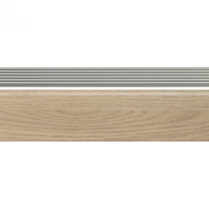 ewe / CanDo afwerkprofiel beige eiken Dit is een extra ‘neus’ met een aluminium profiel, waarbij je de aansluiting kan maken met de verdiepingsvloer.