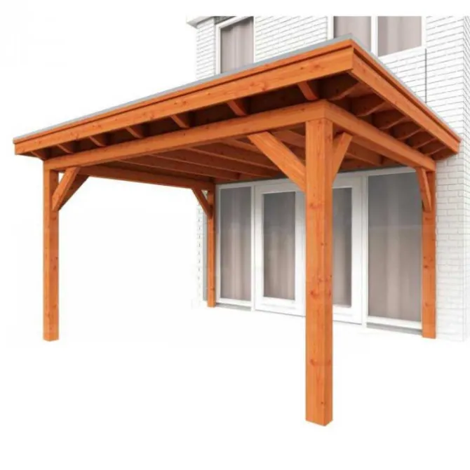 Trendhout veranda Lucca. Dit is het basis model van 4,00 meter diep en beschikbaar in diverse breedte maten. Wil je deze veranda helemaal naar eigen wens samen stellen klik dan op de knop hierboven en ontwerp je veranda in de 3D configurator.