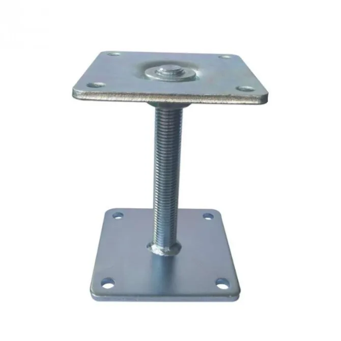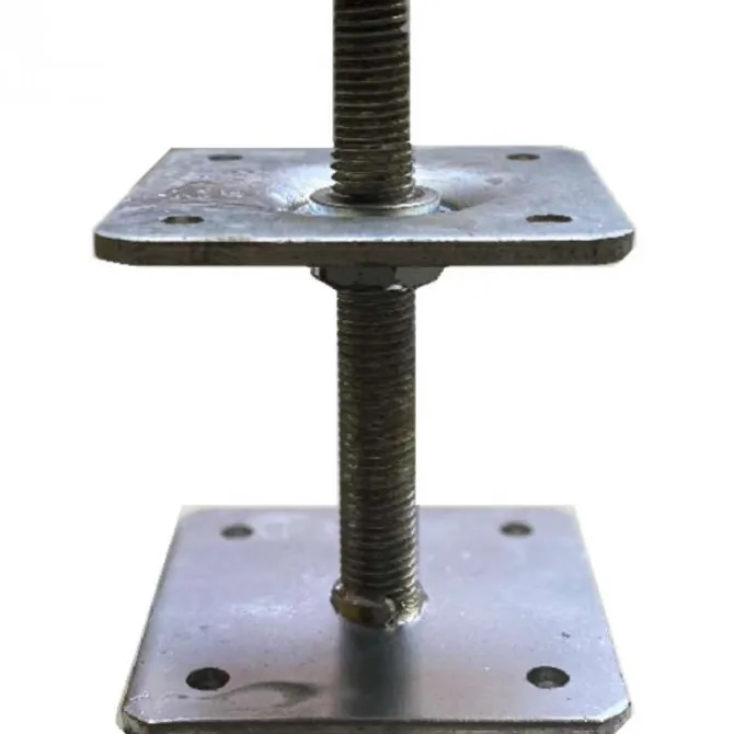 Verstelbare verzinkte plaatanker 11 x 11 cm. Dit anker kun je op het beton schroeven en daarmee kun je een houten paal op hoogte stellen. Je kunt het anker ook gebruiken op de funderingsschroeven.