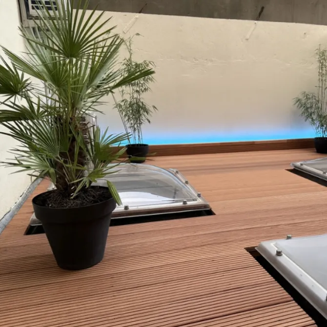 Smaragd vlonderplank totaalpakket hardhout Bankirai 2,5 x 14,5 cm (4,60 mtr) groef/vlak. Vlonder totaalpakket voor 1m2 gelegd met vlonderplanken van 460 cm. Dit pakket bevat 1 m2 planken, inclusief schroeven. Per m2 zit er ongeveer 2,3 strekkende meter onderbalk bij (lengte van de onderbalken is 300 cm). De terrasplank is 2-zijdig geprofileerd en kan naar eigen voorkeur gemonteerd worden.