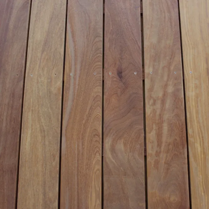 Elephant vlonderplank totaalpakket hardhout Cumaru 2,5 x 14 cm (3,05 mtr) vlak geschaafd. Vlonder totaalpakket voor 1 m2 gelegd met hardhouten vlonderplanken van 305 cm. Per m2 zit er ongeveer 2,3 strekkende meter onderbalk bij (lengte van de onderbalken is 300 cm). Bij dit pakket wordt geen rekening gehouden met snijverlies. De totale hoogte (onderbalken plus vlonderplanken) is 70 mm hoog.