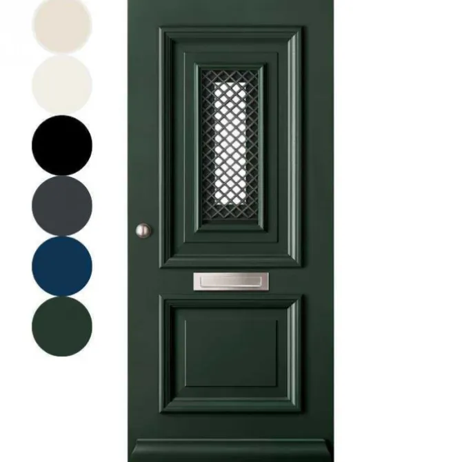 Deze klassieke voordeur uit de serie City Line is gemaakt van Merbau hardhout. Deze voordeur heeft typisch Nederlandse facetprofielen met glas en een rooster. Achter dit rooster zit een draairaam gemonteerd met mat chroom/kleurig draairaambeslag. De deur is voorbehandeld met een grijs kleurige Prime Quality verf. Deze is gemaakt op basis van alkydhars (120 mi Sigmalitch A22). Na de montage dient de deur nog afgelakt te worden in de gewenste kleur voor de garantie (zie ook de bijlage verwerkingsvoorschriften, garantie en voorwaarden). Het is ook mogelijk om de deur af te laten lakken tegen een meerprijs. Het is hierbij aan te raden om voor alle deelbewerkingen te kiezen. Ga je bijvoorbeeld zelf scharnieren infrezen, dan dien je deze nogmaals van de benodigde verlagen te voorzien. Bij de deur Wassenaar is een briefsleuf mogelijk.
