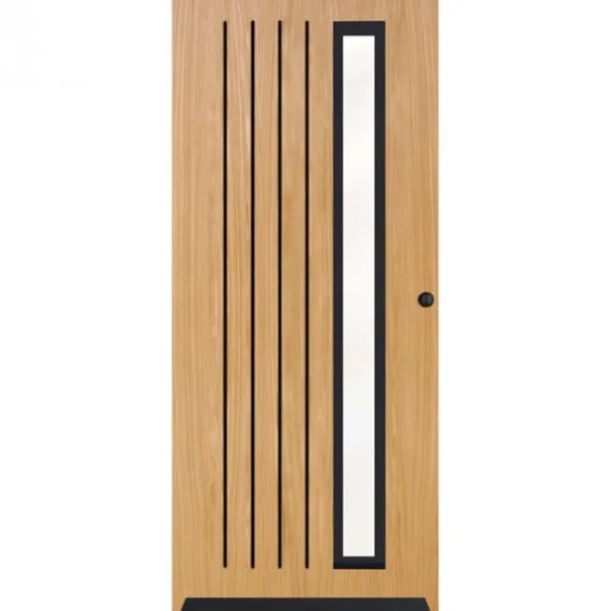 De Austria Meribel uit de serie IsoTherm Eiken is een moderne verticale lijndeur met glas. Deze voordeur is perfect te combineren met de Roble Legno binnendeuren van Austria. Read more