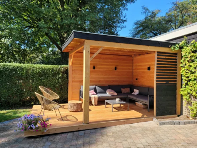 Trendhout zweeds rabat Douglas gezaagd 1,2/2,5 x 19,5 cm. Deze plank is gezaagd, dat wil zeggen dat de oppervlakte ruw is en splinters bevat. Zichtzijde is fijnbezaagd, werkende breedte is 18 cm.